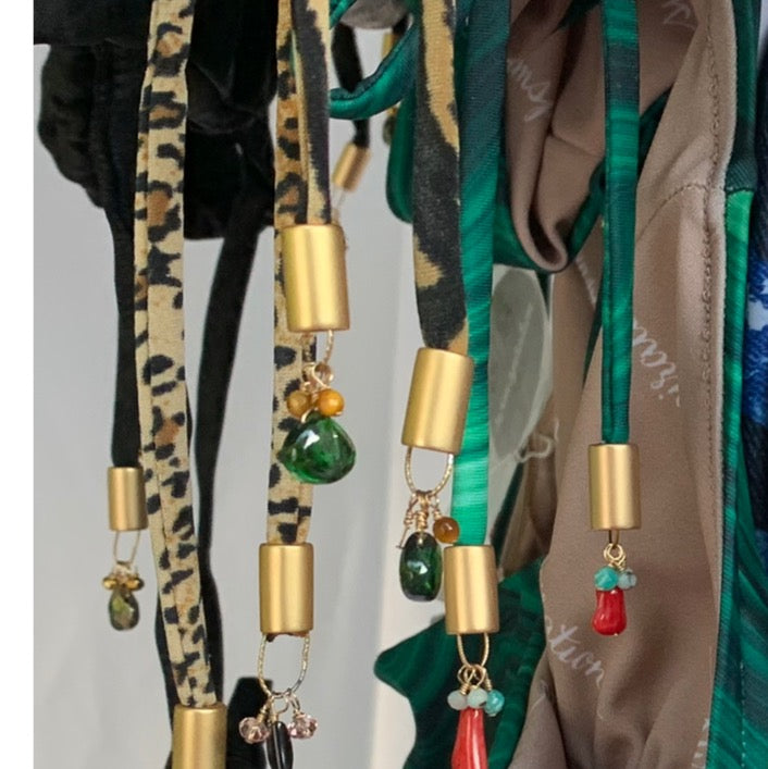 I fell in love with the idea of placing gems on the end of the bikini strings or ties of my swimsuits after gaining an understanding of gems and their life affirming energy obtained from Mother Earth. The idea was to create a reminder that each time a gem sparkles and shines, a woman would get an intuitive nudge and remember that she too is unique; a special life-giving beautiful human being.